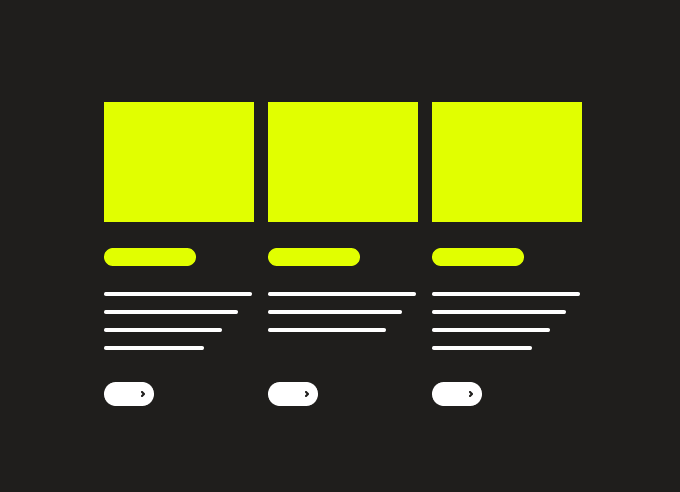 デザインが2パターンある3カラムのブロックです。画像を上部に設定ができ、ブロックの背景全面に画像を設定する事も可能。テキストの他にボタンも設定可能です。