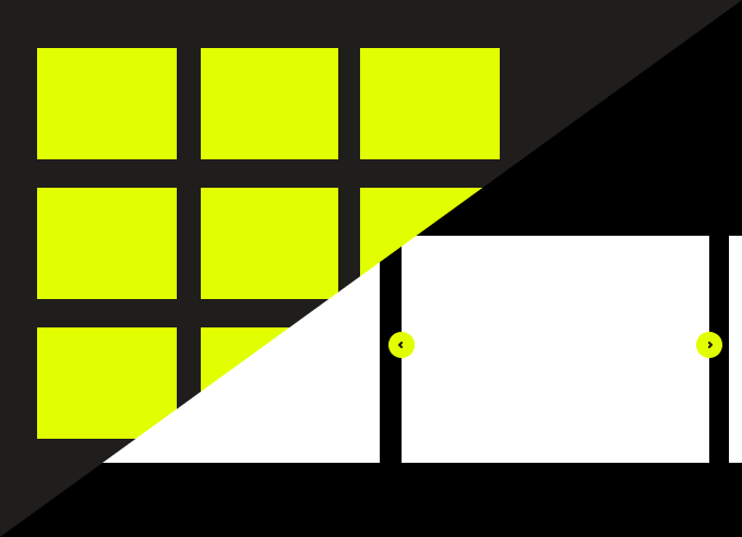 列数が自由なタイル形式のレイアウトと、横にスライドするスライダーが設置可能です。